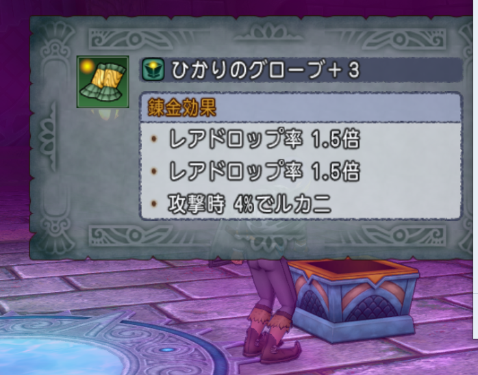 皮のてぶくろや開祖のてぶくろに比べると、ひかりのグローブなので実際はもっと安くなるとは思いますが、バザーではレアドロ2倍の装備が2600万ゴールド以上になっていました。